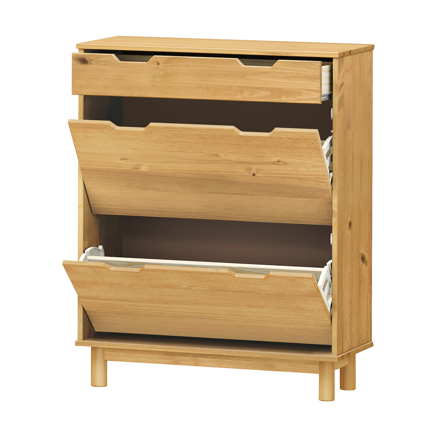 Kód produktu: 324267Vmateriál masiv borovice, lakované provedení 1 zásuvka s kovovými pojezdy, 2 dvouřadé výklopy