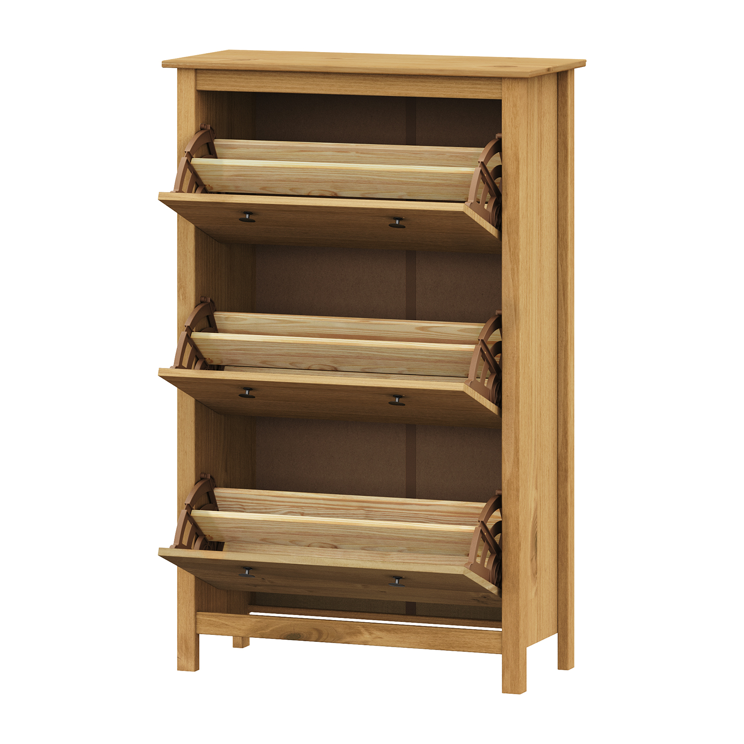 Botník TORINO vosk je ideálním řešením pro všechny, kdo chtějí spojit praktičnost s přírodním vzhledem a útulnou atmosférou domova. Je vyroben z kvalitního masivu borovice, který se vyznačuje pevností, odolností a krásnou kresbou dřeva. Povrchová úprava voskem zvýrazňuje přirozenou strukturu materiálu a dodává mu teplý medový odstín. Díky tomu působí botník velmi přirozeně a harmonicky zapadne do každého interiéru, ať už je laděný do rustikálního, venkovského nebo moderního stylu. Botník TORINO vosk nabízí dostatek prostoru pro uložení obuvi i dalších drobností, které chcete mít v předsíni přehledně uspořádané. Praktická horní deska může sloužit jako plocha pro odkládání tašek a doplňků. Uvnitř se nachází police, které pomáhají udržet pořádek a snadný přístup ke každému páru bot. Díky pevnému zpracování a stabilní konstrukci se můžete spolehnout, že botník obstojí i při každodenním používání. Voskovaný povrch přidává nábytku na eleganci a zároveň ho chrání před poškozením. Kovové úchytky dodávají botníku jemný nádech tradice a doplňují jeho přirozený vzhled. Tento kousek dokáže z každé předsíně vytvořit prostor, který působí uklizeně, teple a přívětivě. Botník TORINO vosk není jen úložným prostorem, ale i stylovým doplňkem, který do vašeho domova vnese kousek přírody a poctivého řemesla.