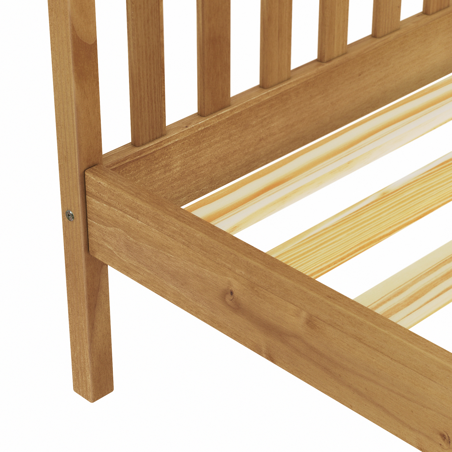 Kód produktu: 8072Vmateriál masiv borovice voskovaná v medovém odstínu výška čela 80 cm, výška sedu 38 cm, cena bez roštu a matrace minimální doporučená výška matrace 15 cm doporučený rozměr matrace 90 × 200 cm a rošt R1 doporučená nosnost do 120 kg