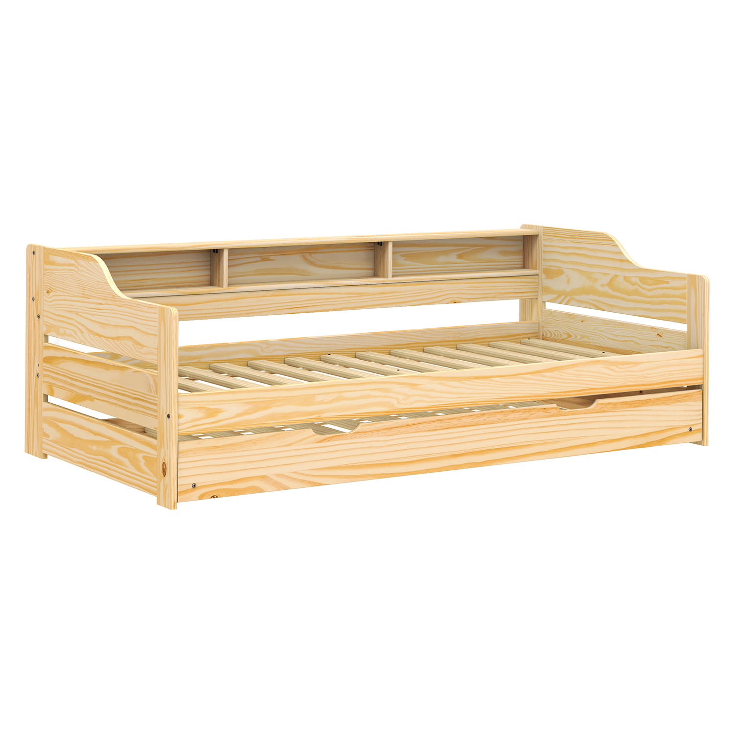 Jednolůžko LILI s lakovaným povrchem je ideální volbou do dětského pokoje, pokoje pro hosty nebo menší ložnice. Vyrobeno je z masivu, což zaručuje pevnost, stabilitu a dlouhou životnost. Lak chrání povrch dřeva a zároveň zvýrazňuje jeho přirozenou kresbu. Díky této úpravě se postel snadno udržuje a dobře vypadá i při každodenním používání. Největší výhodou tohoto lůžka je výsuvná část, která slouží jako přistýlka. Je to praktické řešení pro případy, kdy potřebujete rychle a jednoduše vytvořit druhé plnohodnotné lůžko. Přistýlka se snadno vysune a nabízí pohodlné spaní bez nutnosti složité přípravy. Po použití ji jednoduše zasunete zpět, takže nezabírá zbytečně místo. Celkové provedení působí čistě a nadčasově. Jednoduchý tvar a přirozený vzhled dřeva umožňují snadné sladění s ostatním nábytkem v místnosti. Konstrukce je stabilní a připravená na pravidelné používání. Jednolůžko LILI nabízí nejen pohodlné spaní, ale i praktické řešení pro více osob v jednom prostoru. Spojuje funkčnost, kvalitní materiál a poctivé zpracování. Je to spolehlivý kus nábytku, který v domácnosti opravdu využijete.