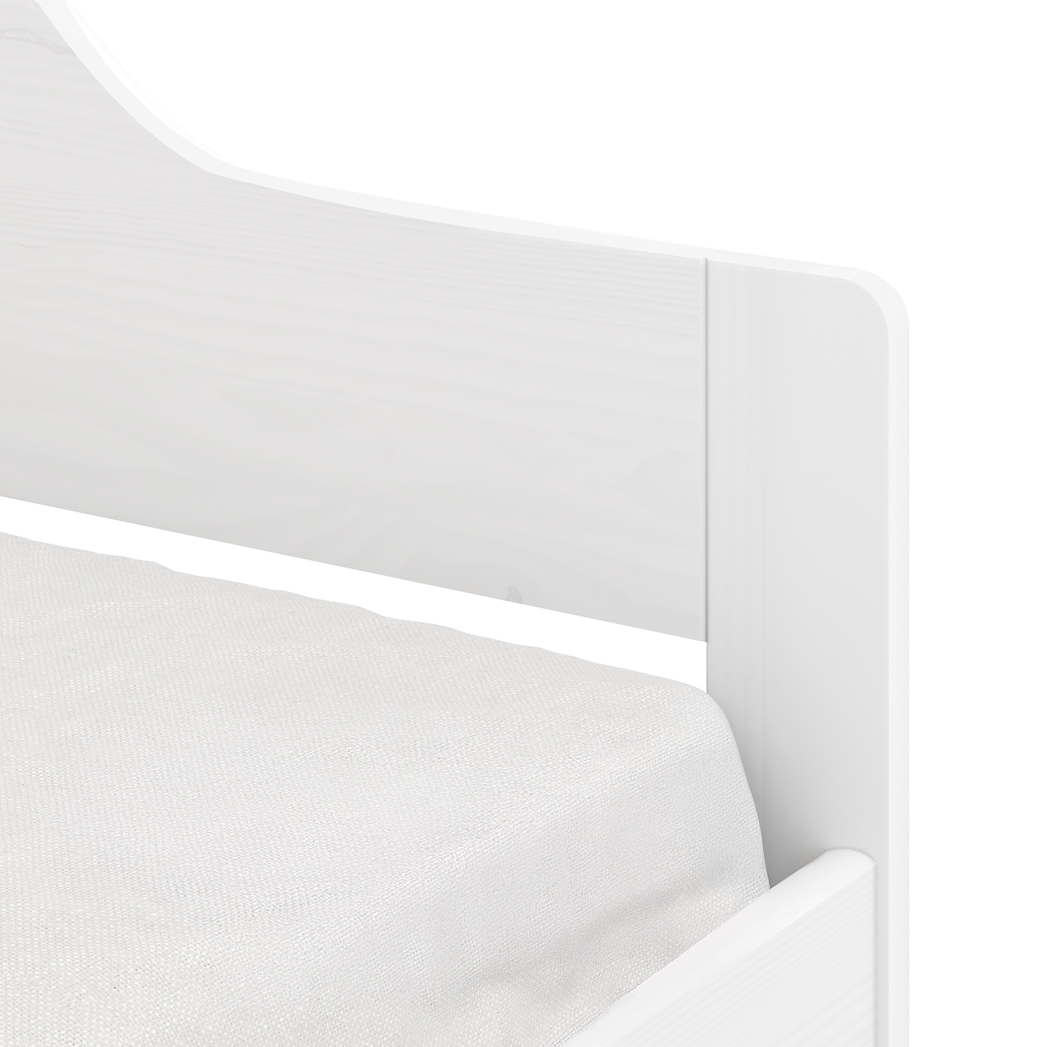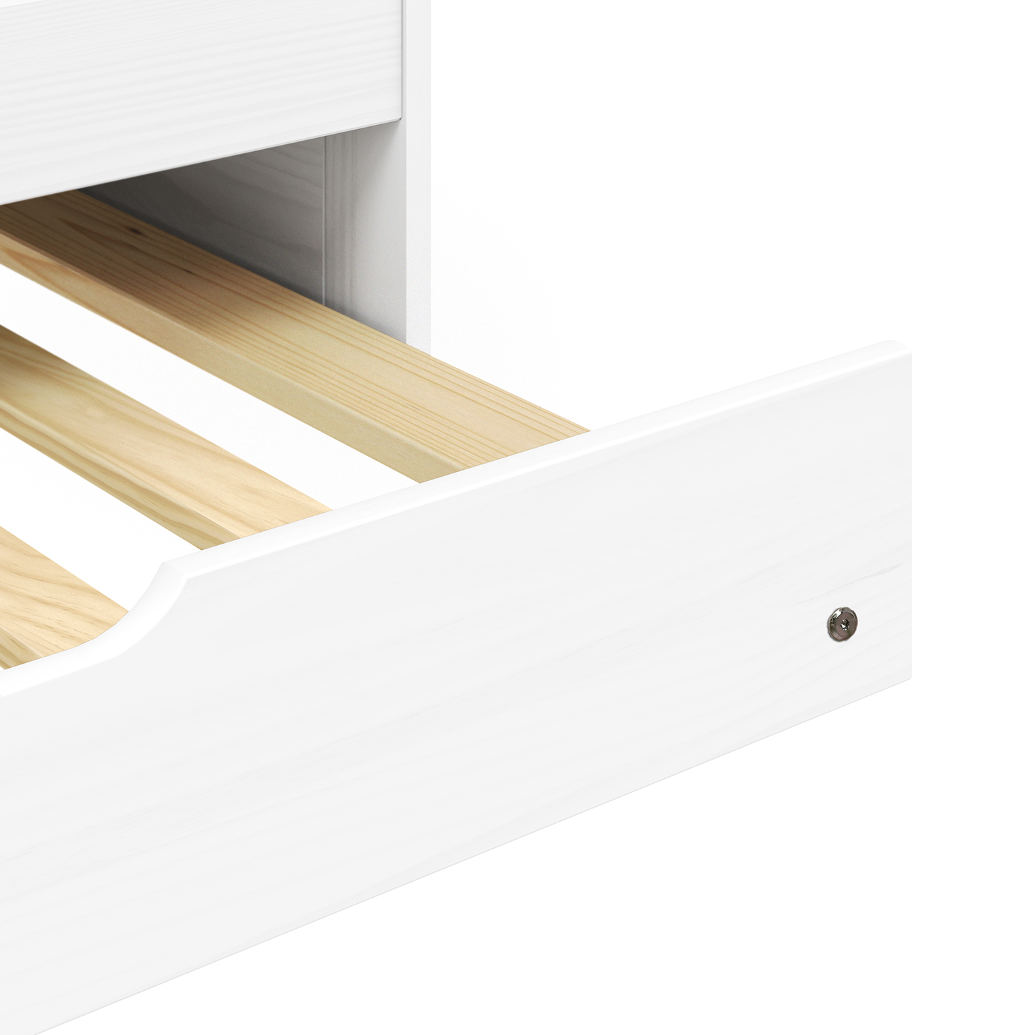 Jednolůžko LILI v bílém laku působí svěže a elegantně, zároveň si zachovává svou praktičnost. Je vyrobeno z masivu borovice, což mu dodává vysokou pevnost a dlouhou životnost. Lakovaný povrch nejen zvýrazňuje přirozenou strukturu dřeva, ale také chrání materiál před poškozením a usnadňuje jeho údržbu. Součástí konstrukce je praktická vysouvací část, která slouží jako přistýlka. Díky tomu lze z postele snadno vytvořit další lůžko pro hosty nebo rodinné návštěvy, aniž by bylo potřeba složité přípravy. Vysouvací část je navržena tak, aby se s ní dalo manipulovat bez námahy a zároveň pevně držela na místě, když není používána. K posteli jsou dodávány kvalitní laťkové rošty, které poskytují stabilní podporu matracím a přispívají k pohodlnému spánku. Matrace nejsou součástí, takže si můžete vybrat přesně takové, které vyhovují vašim potřebám. Jednoduchý design postele umožňuje její snadné začlenění do různých interiérů, ať už v moderním, skandinávském nebo klasickém stylu. Bílá barva opticky prosvětluje místnost a dodává jí pocit čistoty a klidu. V kombinaci s přírodním vzhledem dřeva vytváří příjemnou atmosféru pro odpočinek. Jednolůžko LILI v bílém laku je skvělou volbou pro ty, kdo hledají spojení estetiky, praktičnosti a odolnosti v jednom kusu nábytku.