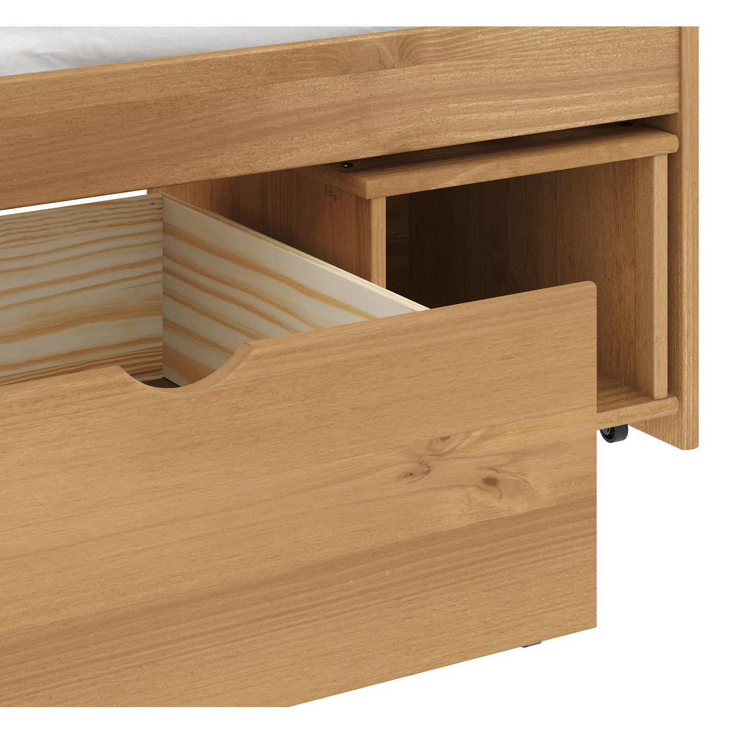 Kód produktu: 8806Vmateriál masiv borovice, voskované provedení výška sedu postele 37 cm dřevěné laťkové rošty jsou v ceně, matrace nejsou v ceně výsuv možno využít jako úložný prostor nebo jako přistýlku doporučená výška matrace pro přistýlku 10 cm doporučený rozměr matrací 90 × 200 cm