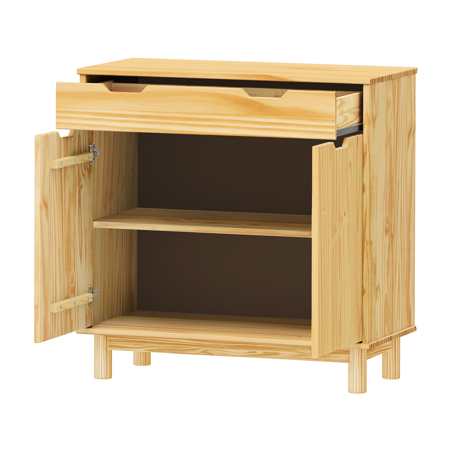 Kód produktu: 324291Vmateriál masiv borovice, lakované provedení 3 zásuvky s kovovými pojezdy, 2 dvířka, 1 police