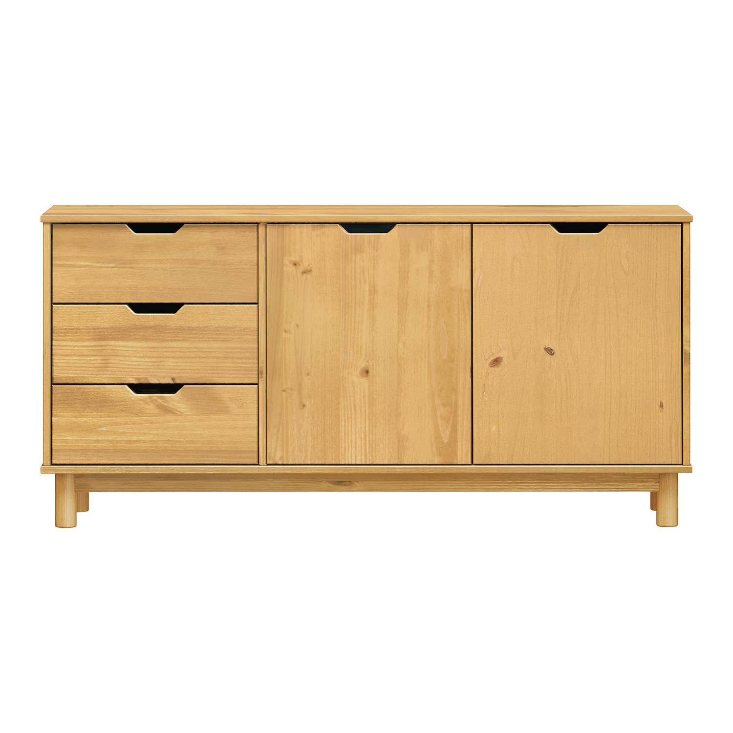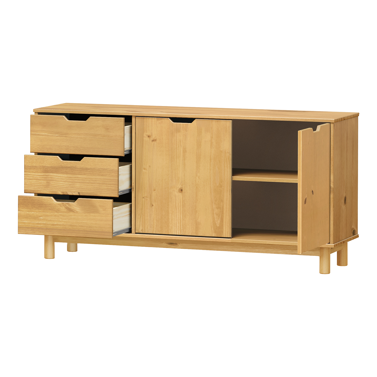 Kód produktu: 324291Vmateriál masiv borovice, lakované provedení 3 zásuvky s kovovými pojezdy, 2 dvířka, 1 police