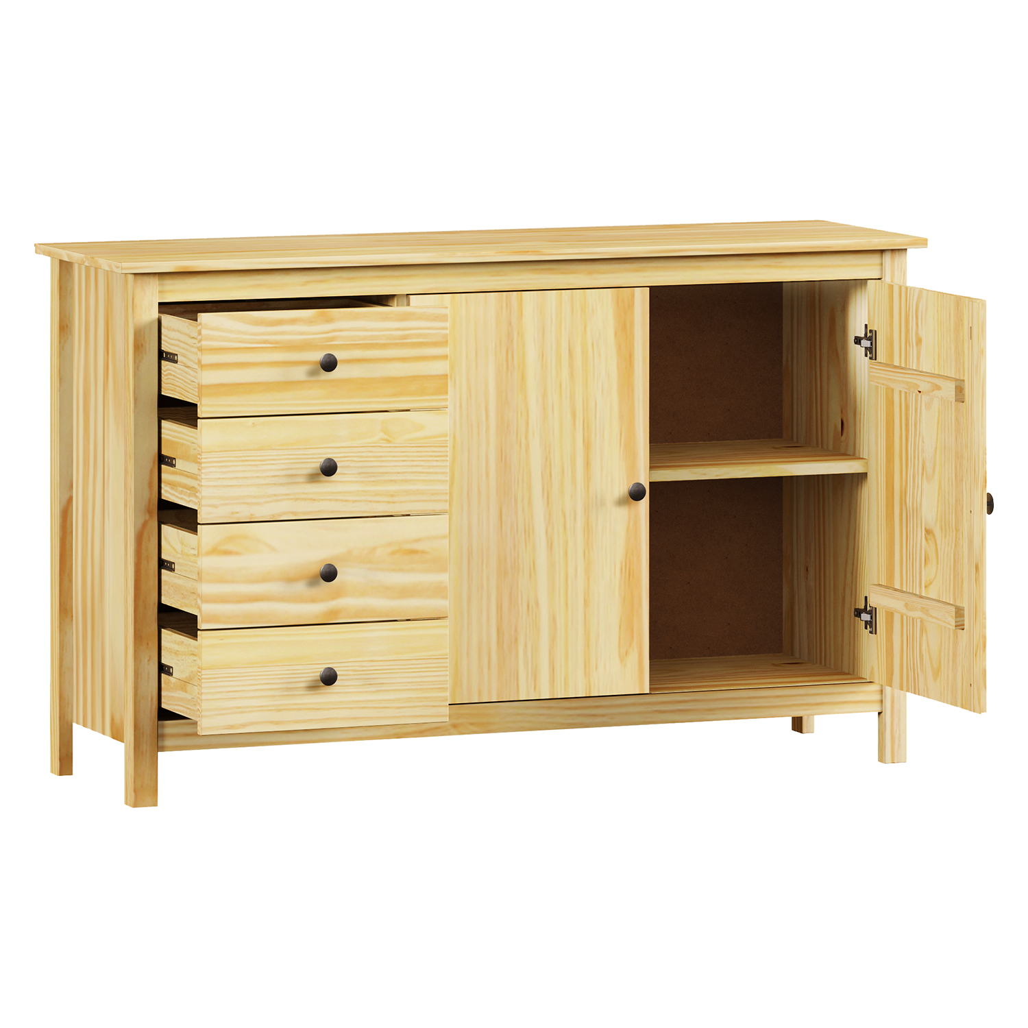 Kód produktu: 8077Kmateriál masiv borovice, lakované provedení kovové úchytky v barevném provedení černěná mosaz 1 dvířka a 4 zásuvky s kovovými pojezdy