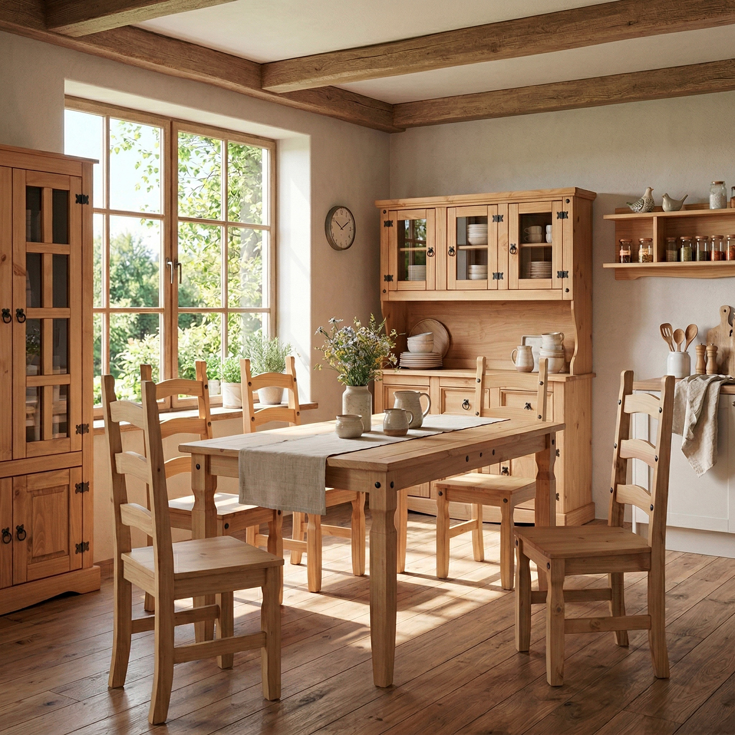 Kód produktu: 164716materiál masiv borovice voskovaná v medovém odstínu výška sedu 46 cm součást sestavy Corona