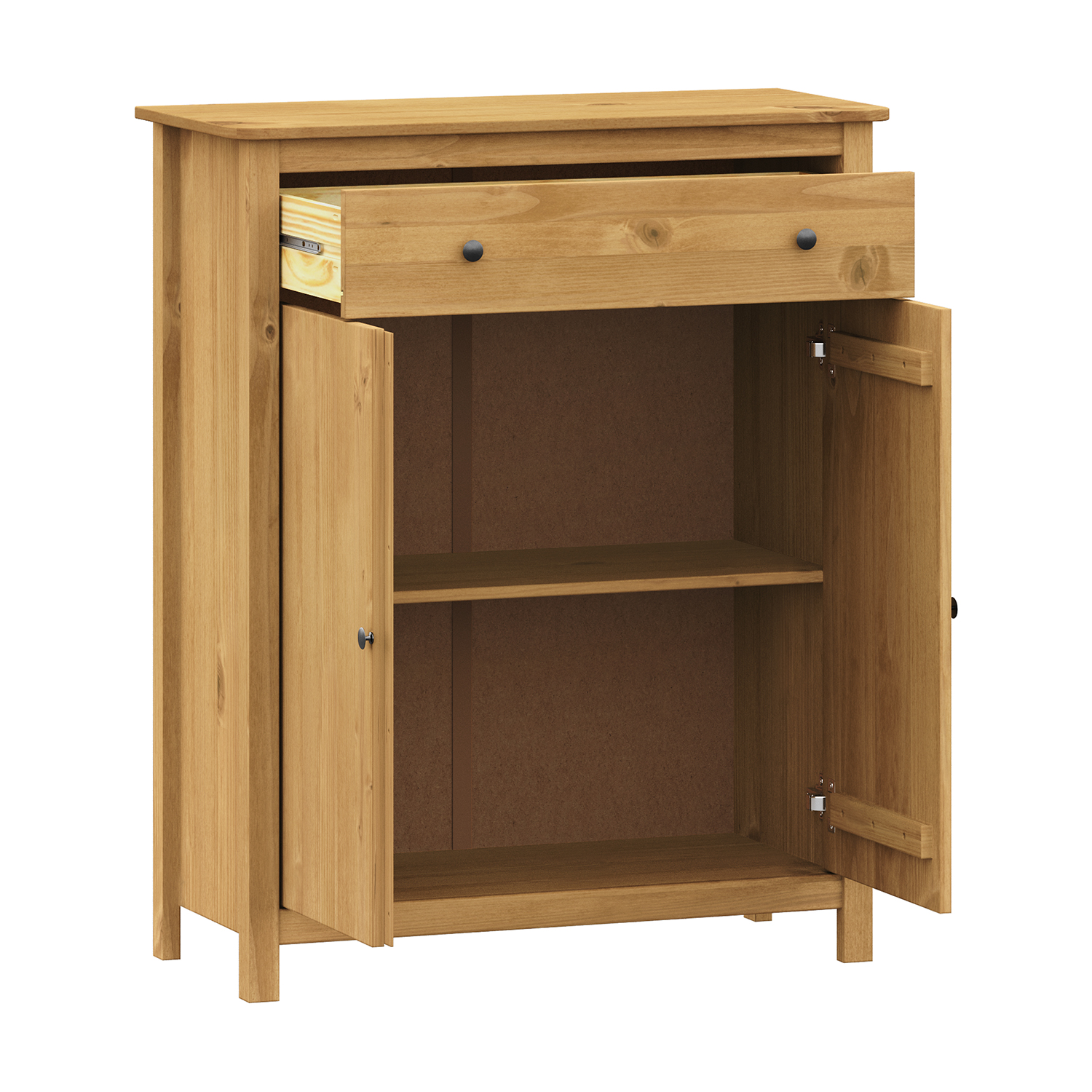 Kód produktu: 8091Vmateriál masiv borovice voskovaná v medovém odstínu kovové úchytky v barevném provedení černěná mosaz 2 zásuvky s kovovými pojezdy, 2 plné dveře, 1 police vhodný doplněk nástavec 8096V