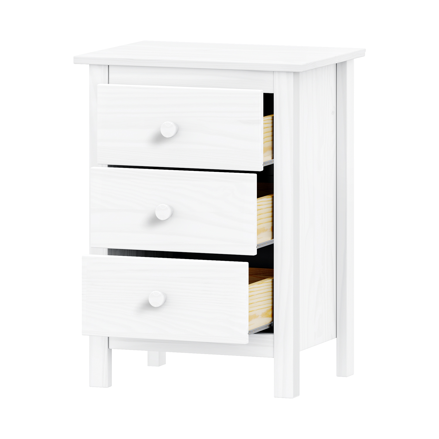 Komoda 3 zásuvky TORINO bílá v provedení masiv šikovně zaplní prostor v dětském pokoji, ložnici i studentském pokoji. Menší komody se zásuvkami jsou určené především vedle lůžek místo nočního stolku nebo k ukládání drobných věcí, v dětském pokoji poslouží i k umístění malých hraček. Děti do něj uklidí nejrůznější skládačky, kostky i další drobné hračky, na které by zbytečně sedal prach, či by se mohly snadno poztrácet. Komoda TORINO se třemi zásuvkami s kovovými pojezdy a hladkým povrchem v barevném provedení bílý lak bude vypadat senzačně v každém pokoji zařízeném nábytkem v provedení masiv bílý lak. Pokud dokážete ocenit jednoduchý a kvalitní nábytek, pak vám nábytek TORINO učaruje. Ukládejte drobné věci do malé komody se třemi zásuvkami.