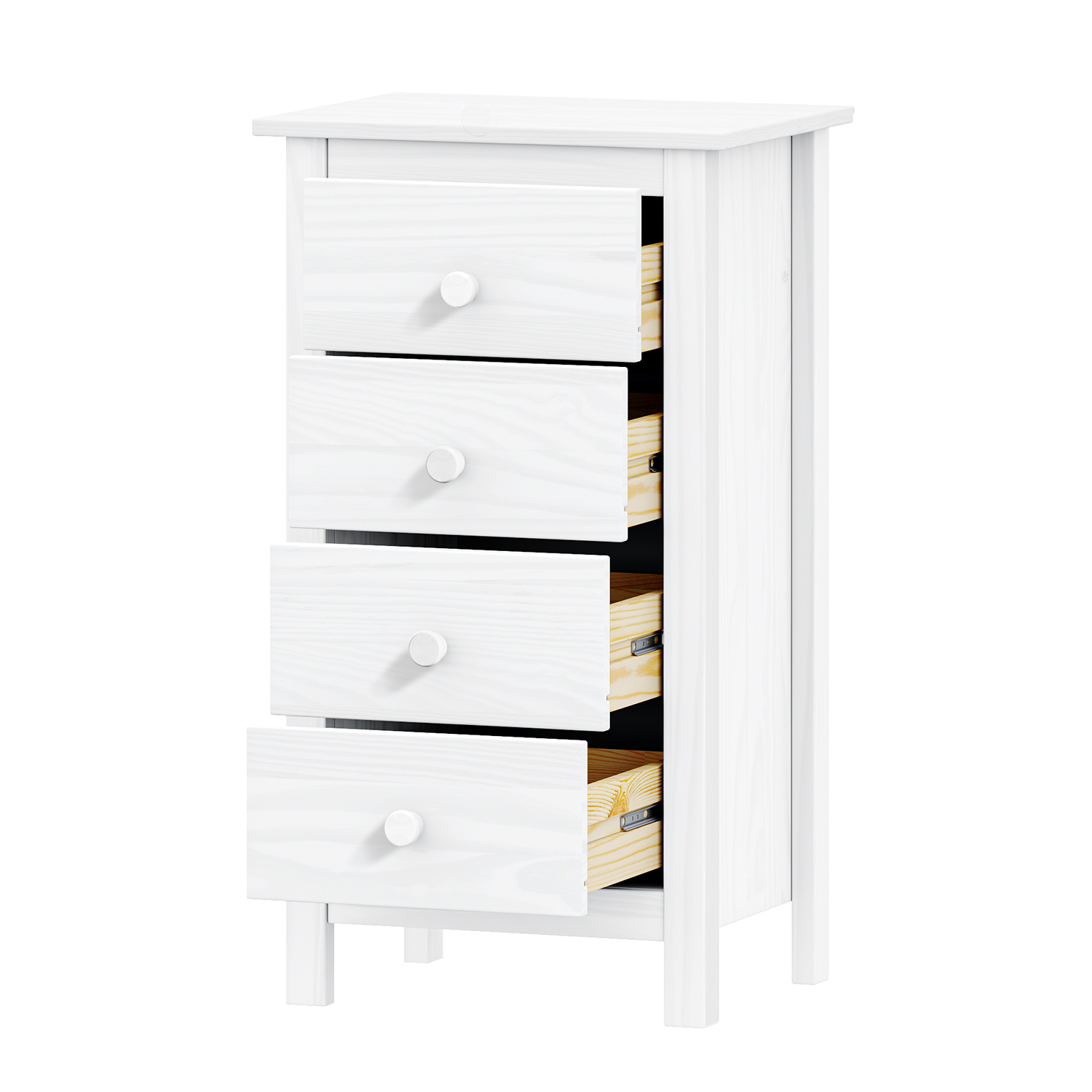 Kód produktu: 9133Bmateriál masiv borovice, barevné provedení bílý lak čtyři zásuvky s kovovými pojezdy