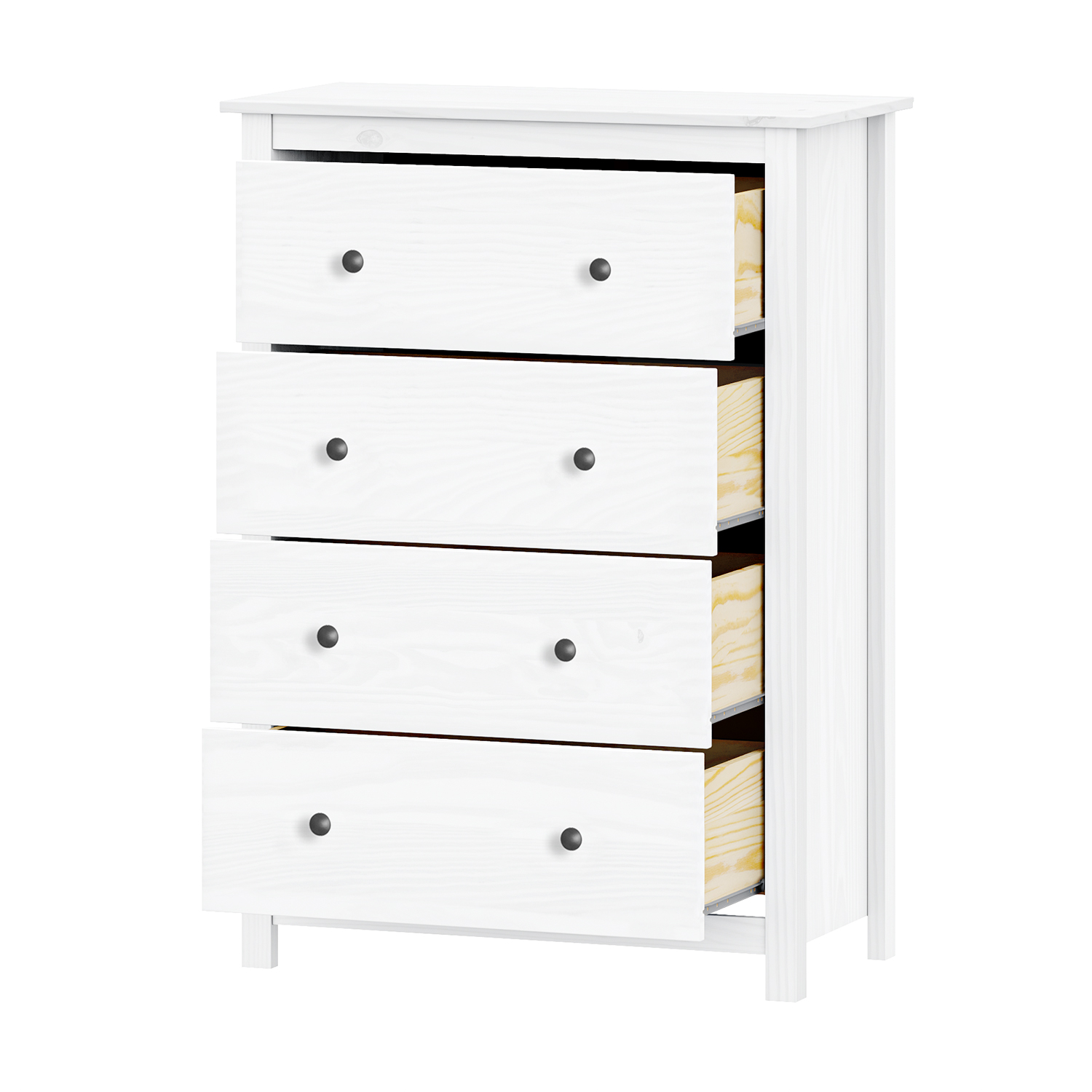 Kód produktu: 8096BKmateriál masiv borovice, barevné provedení bílý lak kovové úchytky v barevném provedení černěná mosaz 4 zásuvky s kovovými pojezdy
