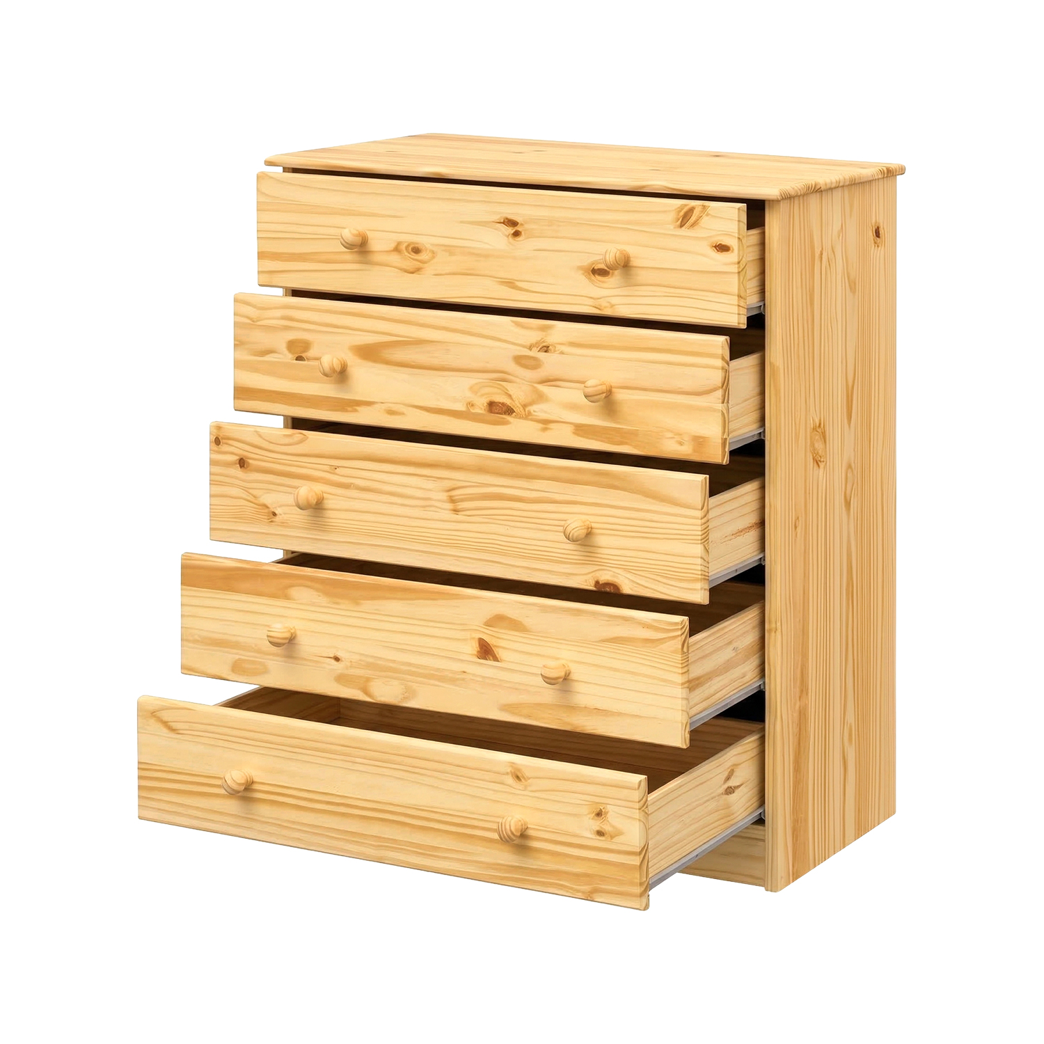 Kód produktu: 819materiál masiv borovice, lakované provedení 5 zásuvek s kovovými pojezdy, hloubka zásuvky 36,5 cm