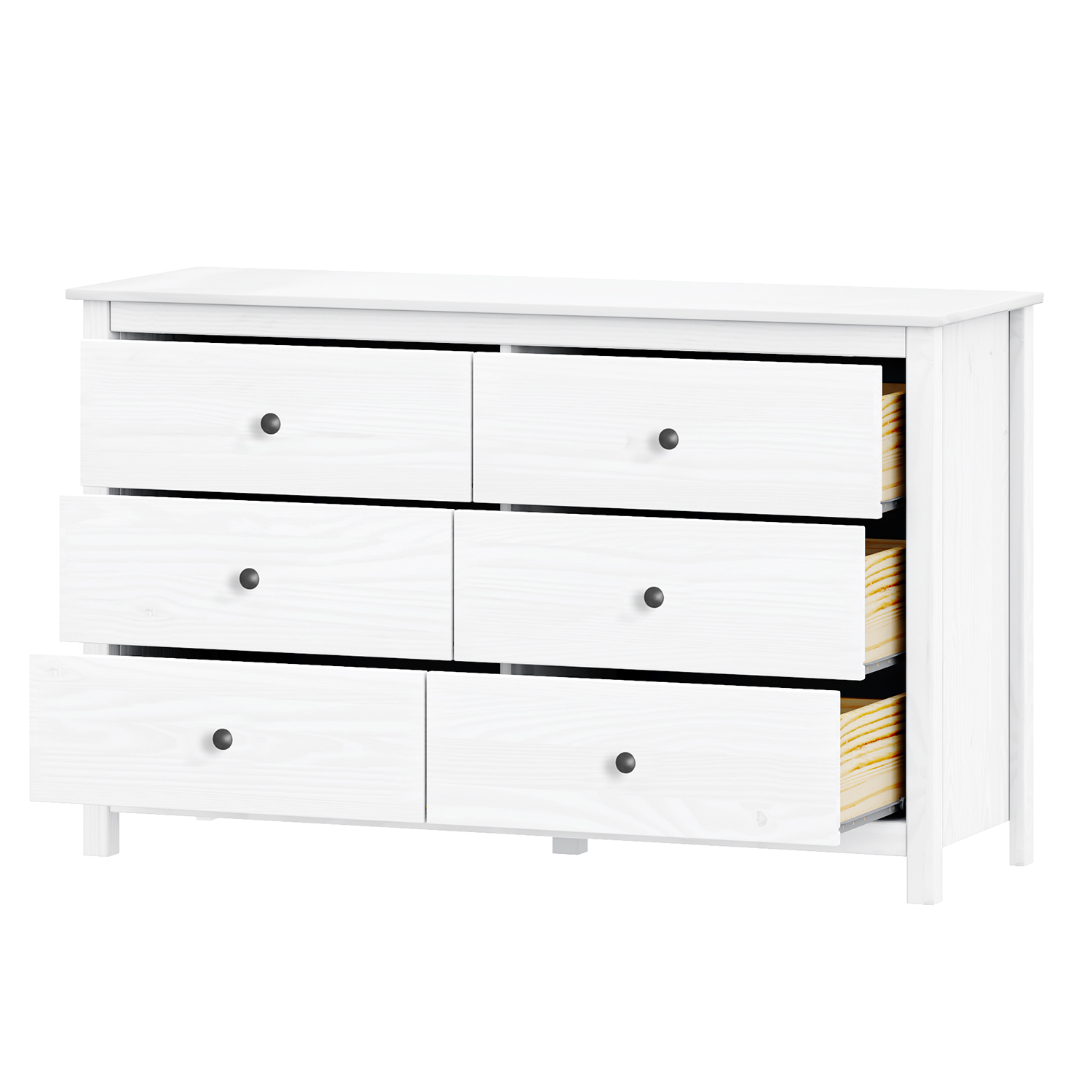 Kód produktu: 8096BKmateriál masiv borovice, barevné provedení bílý lak kovové úchytky v barevném provedení černěná mosaz 4 zásuvky s kovovými pojezdy