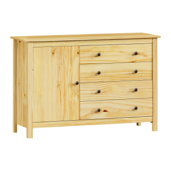 Kód produktu: 8077Kmateriál masiv borovice, lakované provedení kovové úchytky v barevném provedení černěná mosaz 1 dvířka a 4 zásuvky s kovovými pojezdy