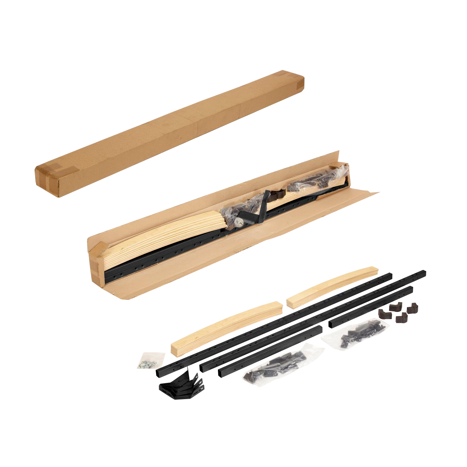 14 dřevěných lišt, černé plastové spojky