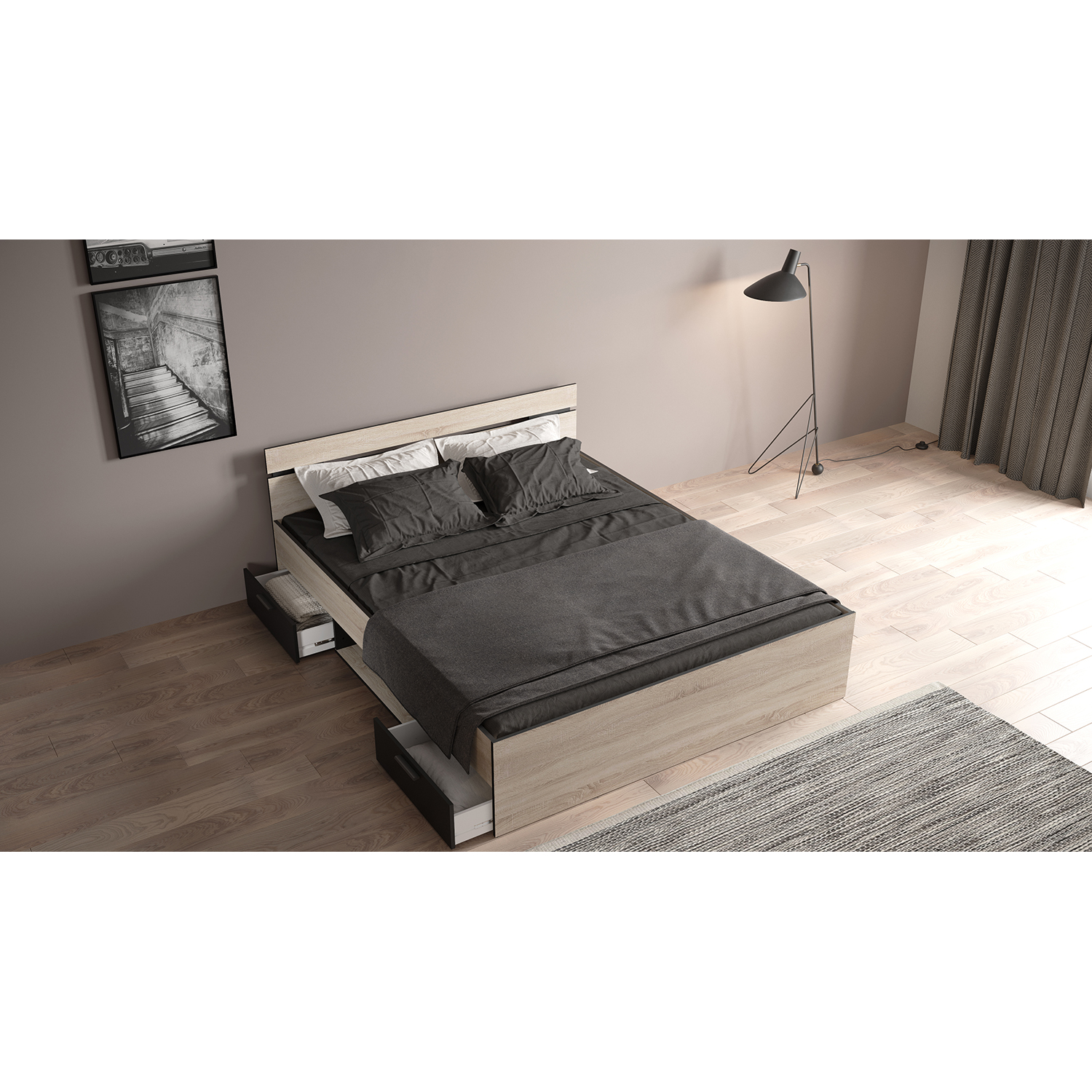 Multifunkční postel Michigan 160 × 200 cm je ideální volbou pro ty, kteří hledají kombinaci moderního designu a praktických funkcí. Tato postel spojuje funkčnost s elegantním vzhledem, který vkusně zapadne do jakéhokoliv interiéru. Kvalitní dubová dýha v kombinaci s černými detaily dodává posteli nadčasový styl, který nikdy nevyjde z módy. S rozměry 160 × 200 cm nabízí dostatek prostoru pro pohodlný spánek, ať už si dopřejete klidnou noc nebo si vychutnáte odpočinek během dne. Multifunkčnost této postele spočívá v jejích skrytých úložných prostorech, které vám pomohou udržet ložnici vždy v pořádku. Stačí otevřít úložné boxy a získáte spoustu místa na vše, co chcete mít po ruce, ale ne na očích. Postel Michigan je perfektním řešením pro ty, kdo hledají funkčnost, pohodlí a design v jednom. Nejenže vám poskytne kvalitní spánek, ale také přidá do vaší ložnice moderní prvek, který okouzlí na první pohled.