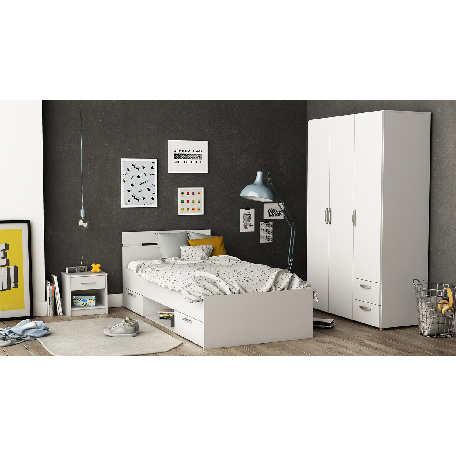 Děti nám doslova rostou před očima a než se nadějete, jsou z vašich malých dítek školou povinné dospívající děti, které mají na vše svůj názor, a to včetně vybavení jejich pokoje. S žádným nemoderním kouskem nábytku to u vás doma tedy neprojde. Vybavte pokojík vašeho syna či dcery moderní a prostornou postelí. Multifunkční postel v rozměru 90 × 200 cm MICHIGAN v trendy matném bílém provedení splní i vysoké nároky vašich dětí a nezruinuje váš rodinný rozpočet. Nejen moderní design je předností této postele, ale také dvě menší zásuvky a nika. Časopisy a nejrůznější věci se už nemusí válet všude po pokoji, ale najdou si své stálé místo právě v zásuvkách a v praktické odkládací nice. Než se vám děti rozprchnou do světa, dopřejte jim pohodlí a teplo domova, rády se k vám budou vracet.
