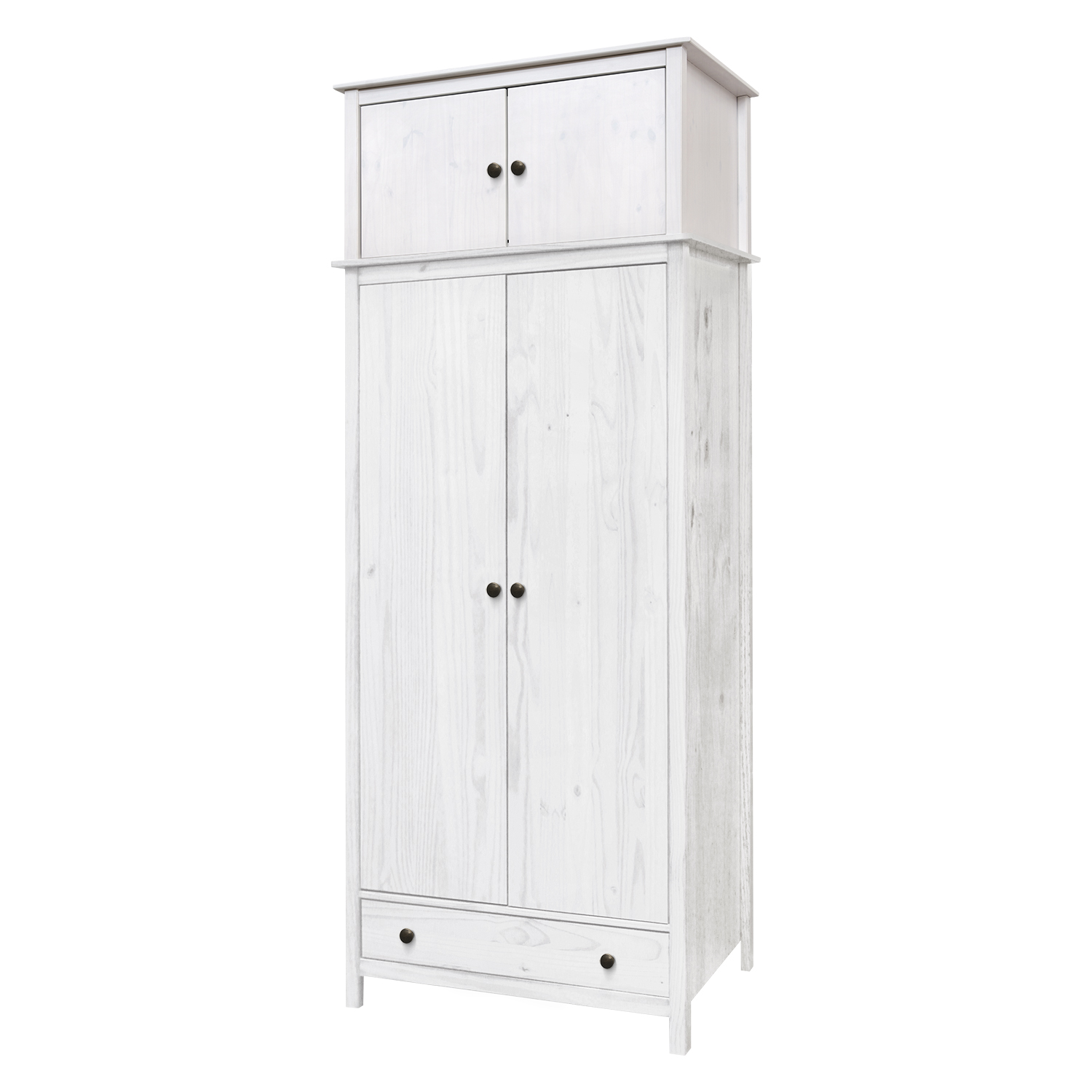 Kód produktu: 8086BKmateriál masiv borovice, barevné provedení bílý lak kovové úchytky v barevném provedení černěná mosaz šatní skříň vybavená šatní tyčí a policí ve spodní části zásuvka s kovovými pojezdy vnitřek skříně v provedení čirý nebo bílý lak doporučený nástavec 8188BK