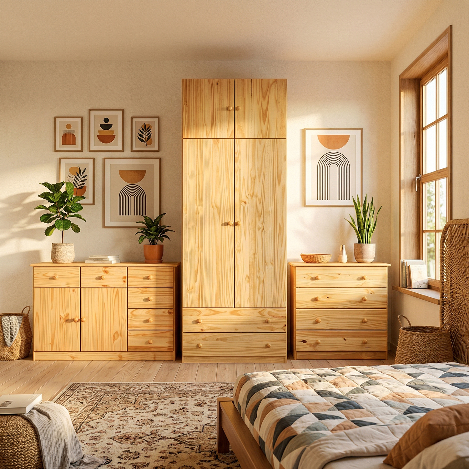 Kód produktu: 817materiál masiv borovice, lakované provedení 5 širokých zásuvek s kovovými pojezdy, hloubka zásuvky 36,5 cm