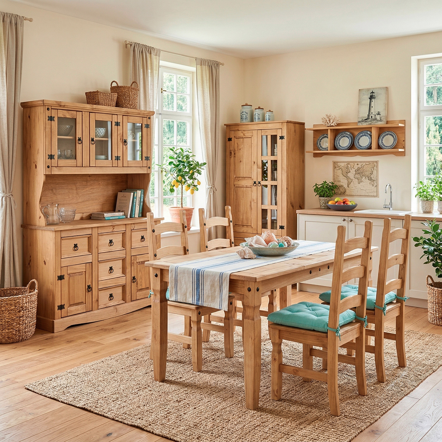 Kód produktu: 16334materiál masiv borovice voskovaná v medovém odstínu kovové ozdobné úchytky a petlice součást sestavy Corona