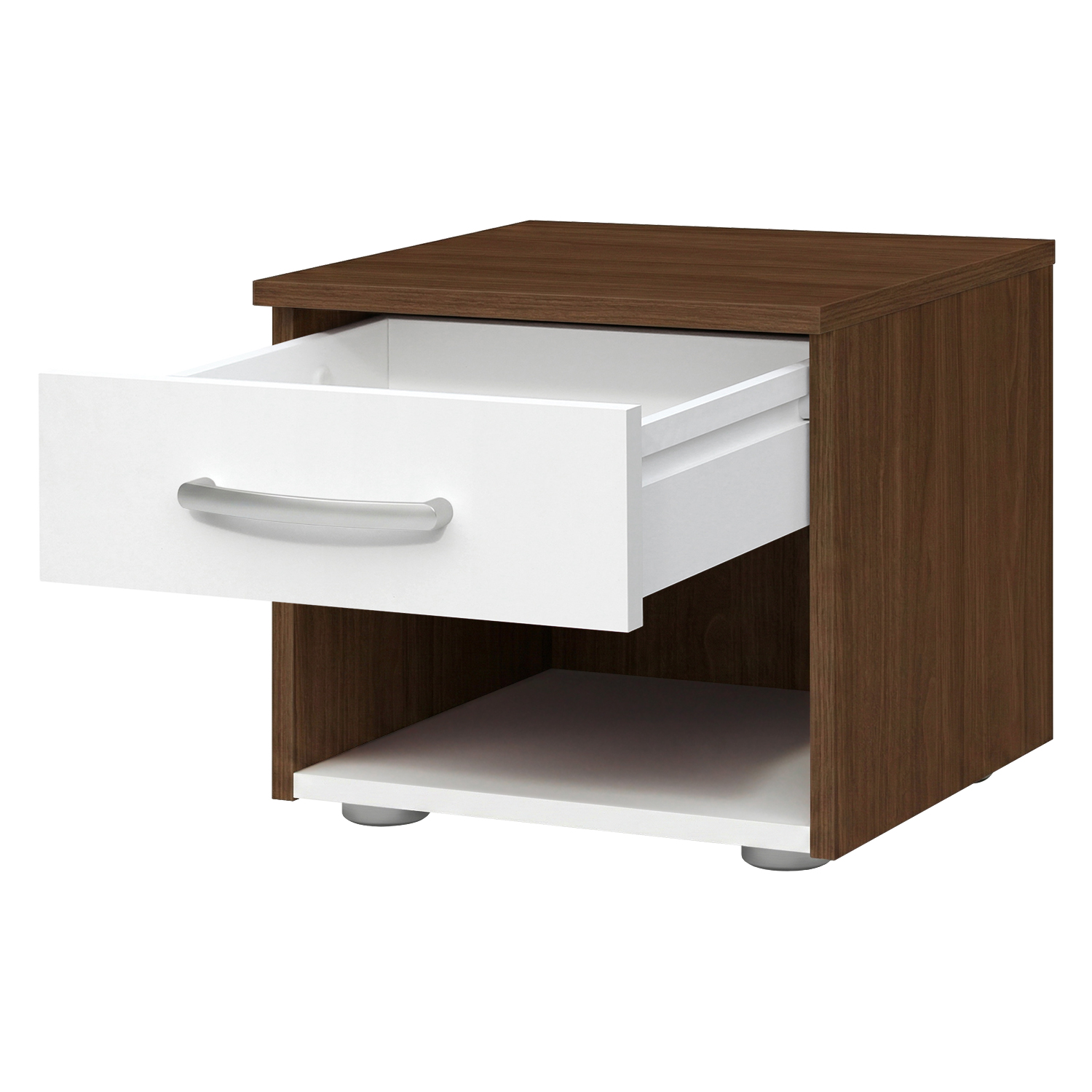 Pokud se ve vaší ložnici nachází lůžko v provedení ořech / bílá, pak by po jeho boku neměl chybět praktický noční stolek ve stejném barevném provedení. Noční stolky dnes nejsou žádným luxusem, stávají se spíše nutností. Kam totiž odložíte před spaním váš mobilní telefon, než právě na plochu nočního stolku. Noční stolek 60140 je tedy dobrou volbou pokud potřebujete odložit mobilní telefon, rozečtenou knížku či hrnek s čajem. Malý noční stolek s jednou zásuvkou vám bude pro každodenní odpočinek naprosto vyhovovat. Noční stolek je totiž kouskem nábytku, který potřebujete chvilku před usnutím a pak ihned po probuzení, takže pokud nepotřebujete příliš mnoho zásuvek, pak vám tento stolek dostatečně poslouží. Tmavý noční stolek s bílou zásuvkou i policí bude vedle lůžka vypadat velice dobře. Nenechávejte prostor vedle vaší postele ladem, i malý nábytek udělá v pokoji spoustu parády.