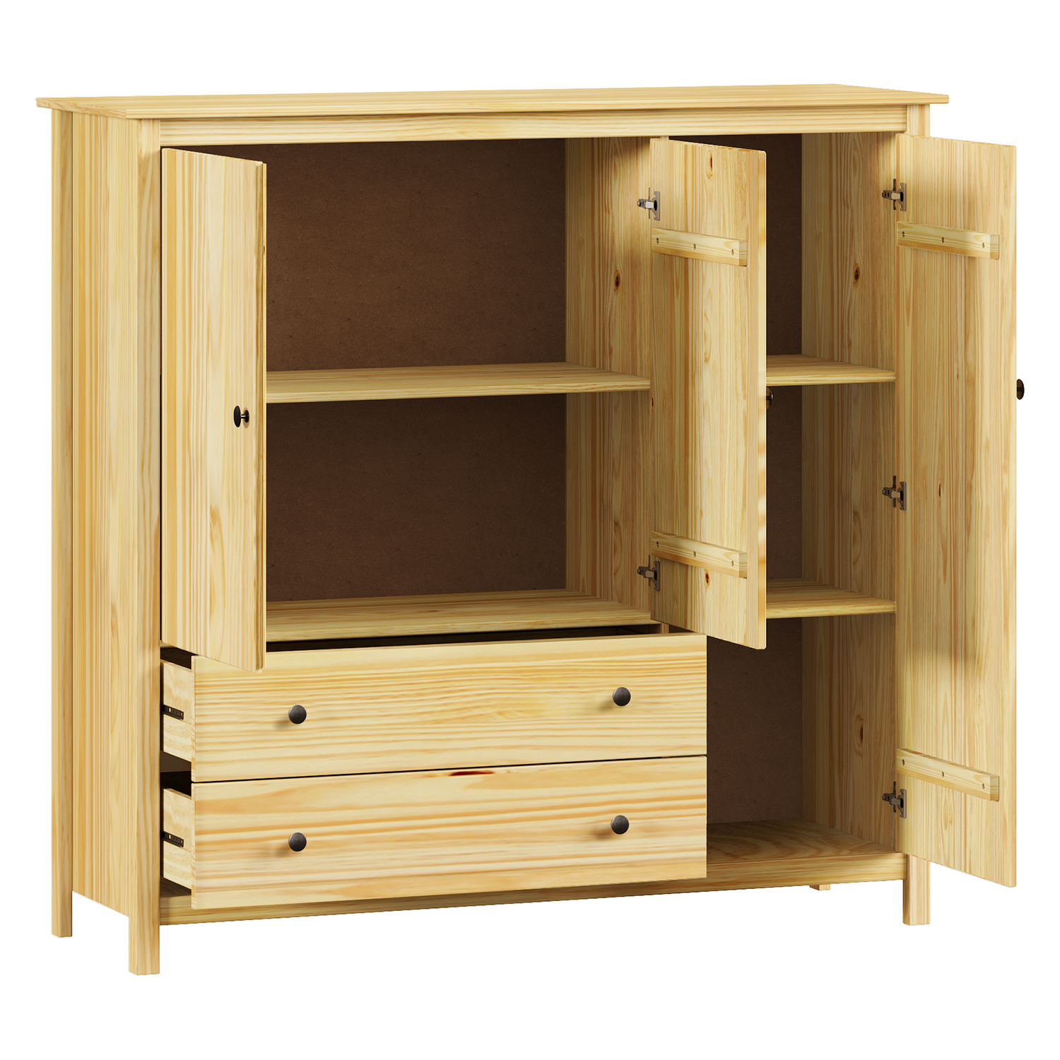 Kód produktu: 8061Kmateriál masiv borovice, lakované provedení kovové úchytky v barevném provedení černěná mosaz 3 zásuvky s kovovými pojezdy, 3 plné dveře, 2 police maximální nosnosti uvedeny v návodu k montáži