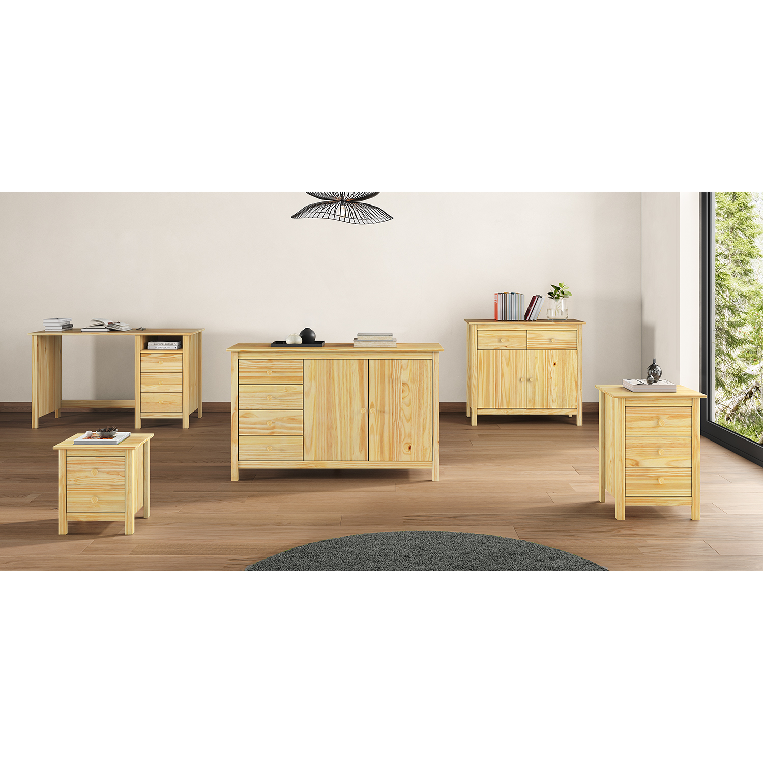 Kód produktu: 8096materiál masiv borovice, lakované provedení 4 zásuvky s kovovými pojezdy, 2 plné dveře, 1 police