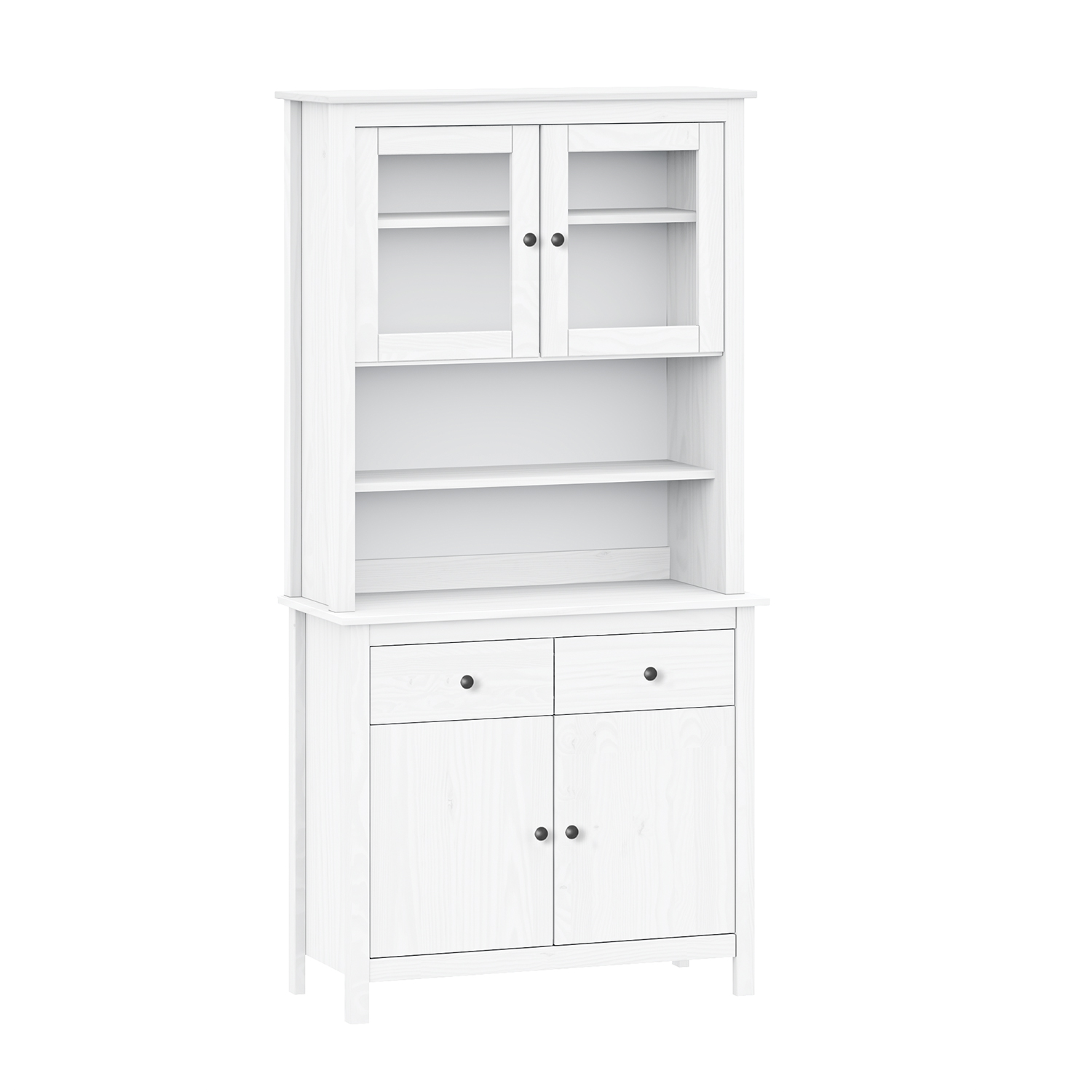 Kód produktu: 8097BKmateriál masiv borovice, barevné provedení bílý lak kovové úchytky v barevném provedení černěná mosaz 2 prosklené dveře, 1 police nástavec příborníku 8095BK