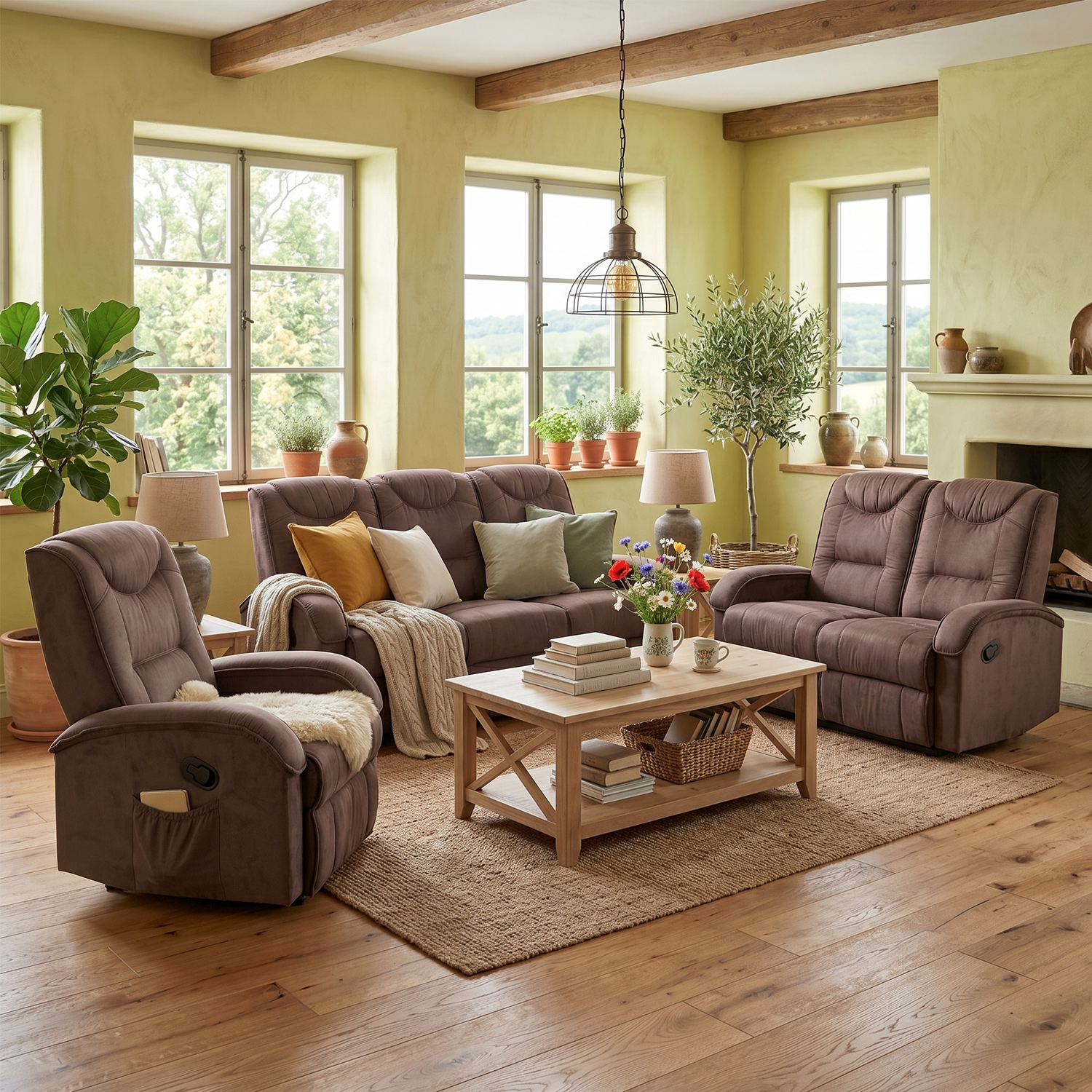 Pokud plánujete zařídit pohodlným nábytkem velký obývací pokoj, tak aby se u vás cítila dobře každá návštěva, doporučujeme pořídit nejen prostornou pohovku, ale hned celou sedací soupravu. Sedací souprava BOB v barevném provedení hnědá totiž obsahuje jak masážní křeslo pro dokonalou relaxaci, tak prostorné dvojkřeslo se dvěma polohovacími sedáky a především pak prostorné trojkřeslo s jedním pevným a dvěma polohovacími sedáky. Všechna křesla mají vysokou zádovou opěrku i široké područky, takže zajistí pohodlné posezení. Po náročné práci si vychutnáte uvolňující masáž v masážním křesle, příjemné čtení denního tisku absolvujete v dvojkřesle a při rodinné oslavě se usadíte na trojkřeslo. Sedací souprava v provedení imitace broušené hnědé kůže bude navíc vypadat velice luxusně v každém prostoru. Nedělejte kompromisy mezi pohodlím a dokonalým designem, sedací souprava BOB má obojí.