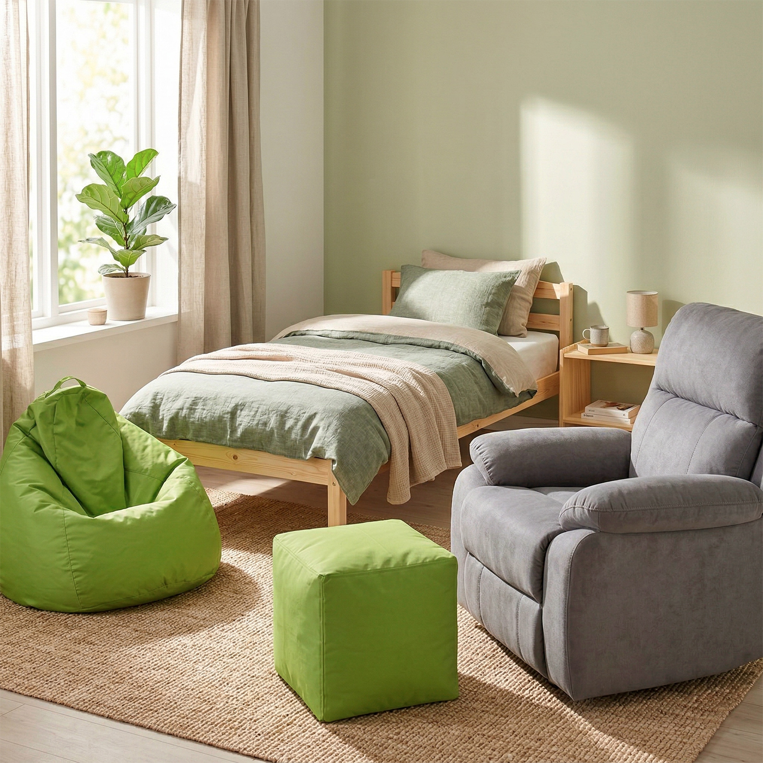Děti milují sedací vaky a už navždy je vyměnily za nudné židle a nepohodlné pohovky. Sedací vak totiž naprosto vyhovuje jejich rychlému tempu i bláznivým nápadům. Na vaku se dá sedět, válet, číst si i sledovat pohádky na tabletu či v televizi. Sedací vak STANDARD ve veselé světle zelené barvě bude děti přitahovat. Sedací vaky budou zdobit jejich pokojíček a posedá si na ně třeba celá parta. Malý vak ve tvaru hrušky bude mít své stálé místo v dětském pokojíčku, pohodlné vaky však skvěle poslouží nejen u vás doma, ale také v zájmových kroužcích pro děti, školách, školkách i dětských koutcích či tělocvičnách. Vaky jsou plněny kuličkami z polystyrolu, které lze, díky zipovému uzávěru, libovolně přidávat a odebírat a tím měnit jejich tvar i tuhost. Dnes už se nečtou odpolední pohádky u malých postýlek, ale u pohodlných vaků, místo pro hru a odpočinek tak zůstává stejné. Obsah vaku časem může změnit svůj objem. Náplň lze dokoupit a doplnit.