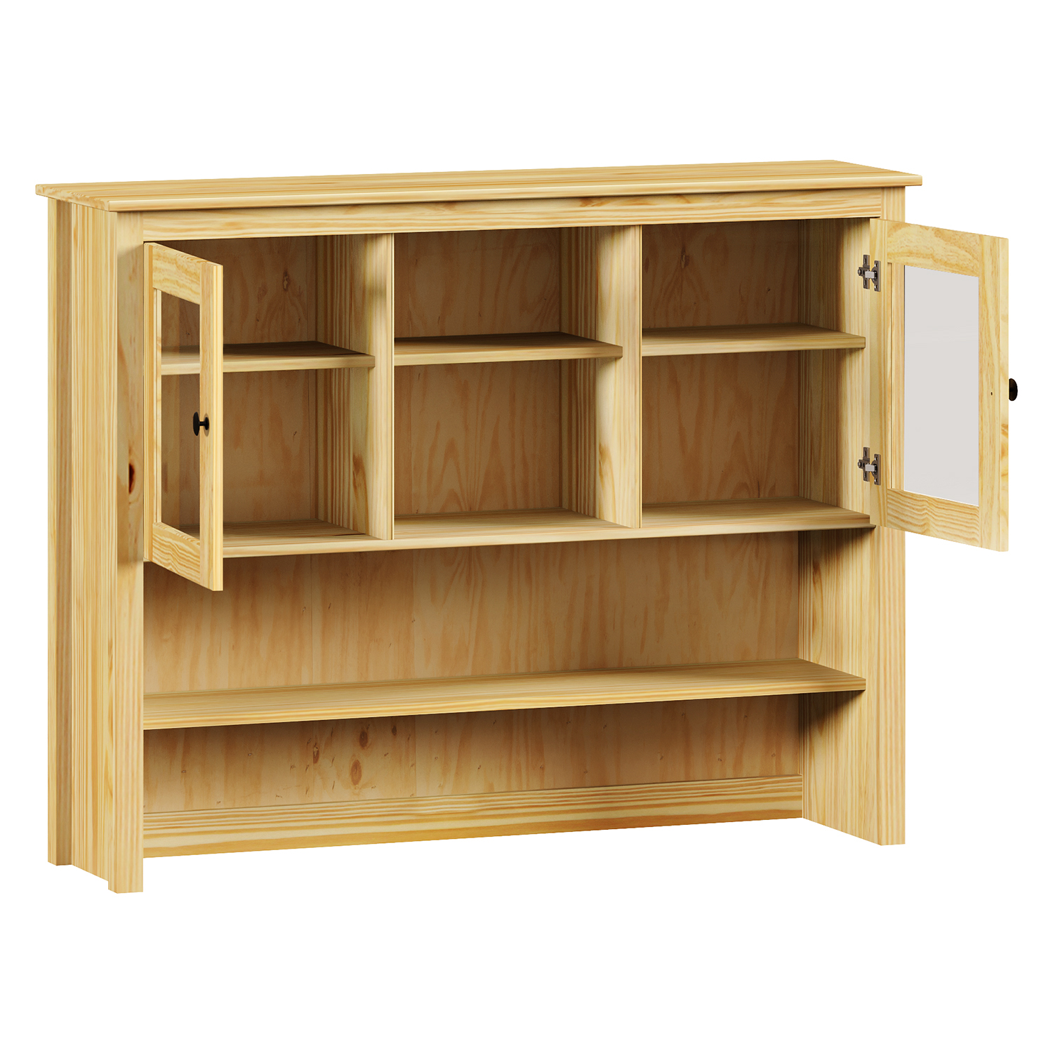 Kód produktu: 8095Kmateriál masiv borovice, lakované provedení kovové úchytky v barevném provedení černěná mosaz 2 prosklené dveře, 1 police nástavec příborníku 8095K