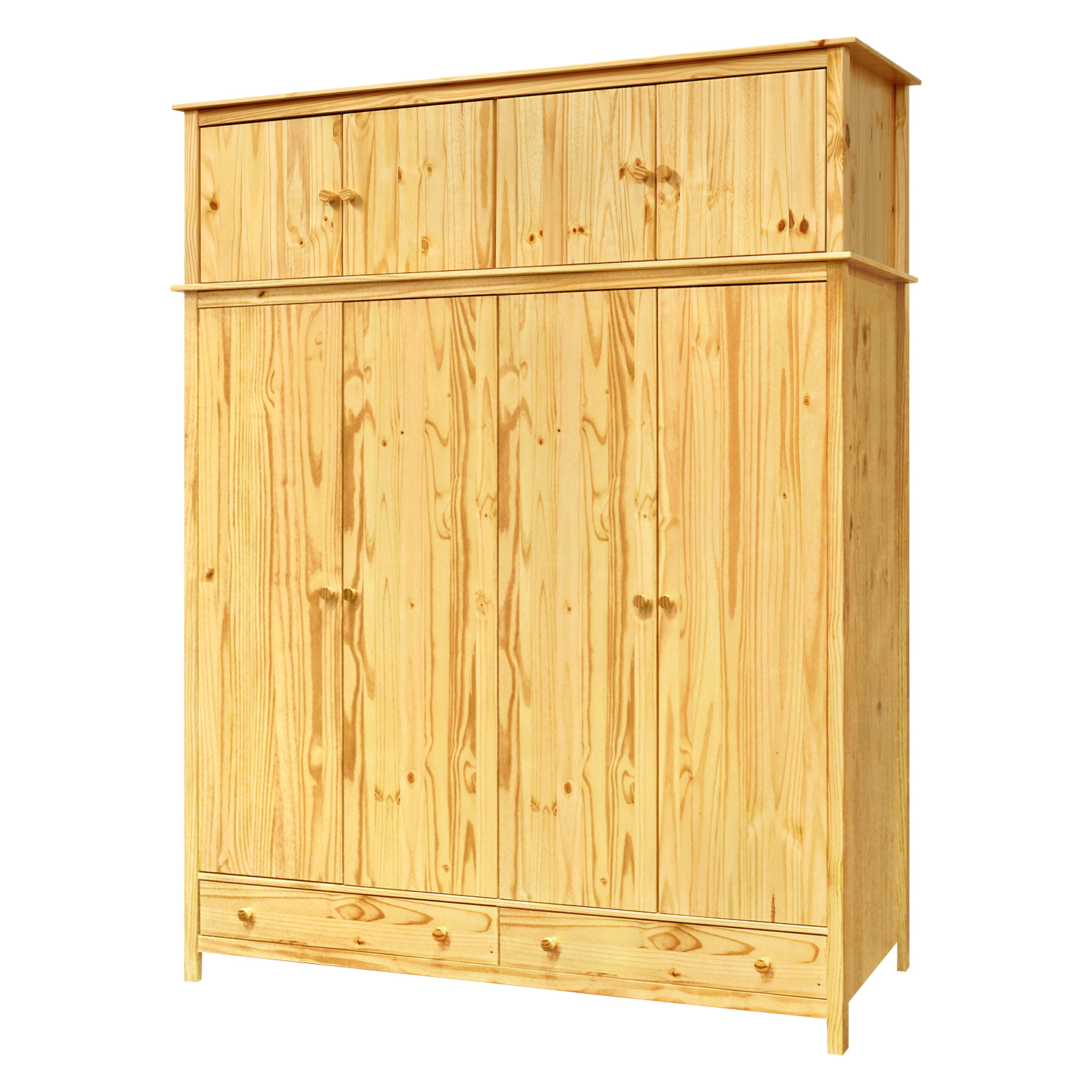 Krásná a prostorná skříň je snem každého, kdo disponuje vícero kousky oblečení. Dostatek místa k uložení vašich svršků vám nabídne skříň 4dveřová TORINO. Je v klasickém provedení masiv borovice. Prostor je dělený na poloviny. V levé polovině je šatní tyč a police na klobouky. V pravé polovině jsou 3 police. Ve spodní části se nachází 2 zásuvky s kovovými pojezdy, kam můžete uložit vaše doplňky nebo spodní prádlo. Do polic pak do komínků zbytek oblečení a na ramínka pověsíte bundy, šaty či košile. Díky jejímu vzhledu vám bude skvěle ladit i na chalupě či chatě. Radost však může udělat i v moderně vybaveném domě.