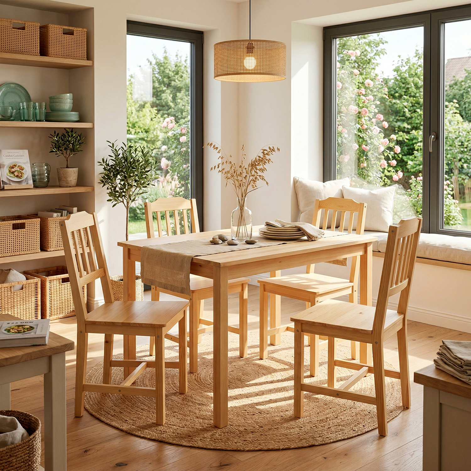 Není nad to, strávit svůj čas po boku milované rodiny a kde jinde než právě u jídelního stolu se sejdou všichni její členové. Chutné jídlo totiž přiláká ke stolu jak nevšímavé dospívající děti, tak malé neposedy i věčně zaměstnané tatínky. Stůl a 4 židle 8849 v provedení masiv borovice budou doslova zvát ke společné večeři, vzájemným diskuzím i svátečním okamžikům. Pevná jídelní sestava vás překvapí svým pohodlím a robustním vzhledem. Židle pěkně podepřou záda a bude se z nich snadno vstávat i starším osobám. Nábytek v přírodních barvách dá vaší jídelně svěží vzhled a pokrmy servírované na pěkném stole budou nejen k nakousnutí, ale pro vaše dospívající děti i inspirací na skvělou fotku na Instagram.