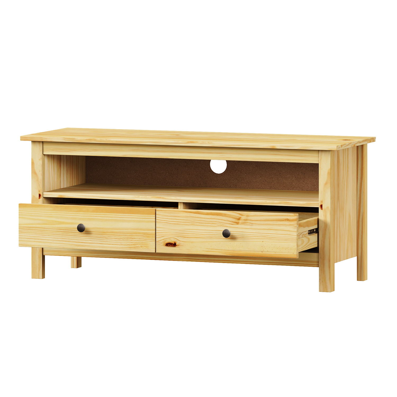 TV stolek TORINO je nábytek, který přesně ví, co dělá. Nenutí se do trendů, ale působí pevně, přirozeně a sebevědomě. Masivní borovicové dřevo v lakovaném provedení vytváří hřejivý základ, který si nerozumí s plastem ani s přehnanou zdobností. Je to poctivý kus nábytku, co má hloubku i charakter. Dřevo má svou strukturu, kresbu a vůni, kterou si žádná napodobenina nepřivlastní. Dvě hluboké zásuvky nabízejí úložný prostor, který nezmizí s první větší změnou životního stylu. Ať už si do nich dáte ovladače, nabíječky nebo staré DVD filmy, všechno v nich bude mít své místo. Kovové úchytky nejsou pro parádu, ale pro jistý úchop. Studí přesně tak, jak byste od kovu čekali a drží přesně tak, jak potřebujete. Vrchní deska je robustní, takže si s ní nemusíte dělat starosti. Televizor, reproduktory, květina nebo kniha, všechno na ní najde rovnováhu. Rozměry jsou promyšlené tak, aby stolek nepůsobil masivně, ale přitom ustál každodenní provoz. Hodí se nejen pod televizi, ale i jako nízká komoda do obývacího pokoje, pracovny nebo ložnice. TORINO není univerzální řešení, je to poctivý základ, na kterém se dá stavět.